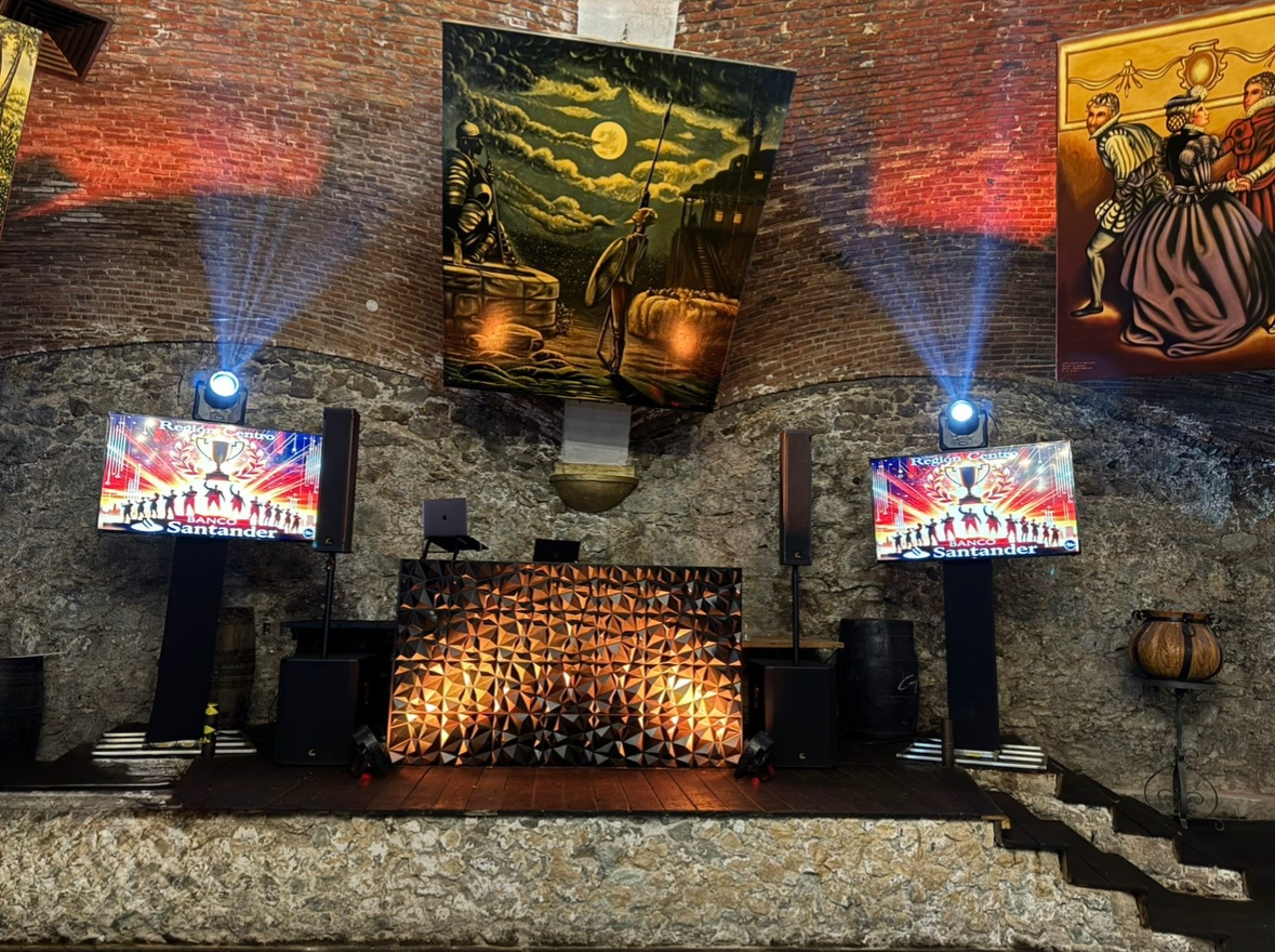 Aram eventos Bocinas Pantallas planas y de led Iluminación Cámara 360 Vallas metálicas Salas lounge y periqueras Escenarios y escenografías Dj