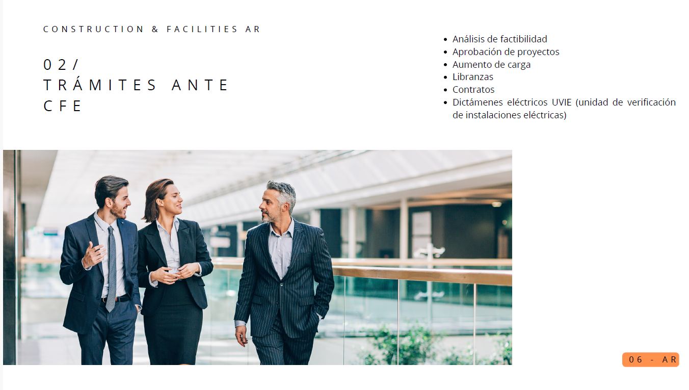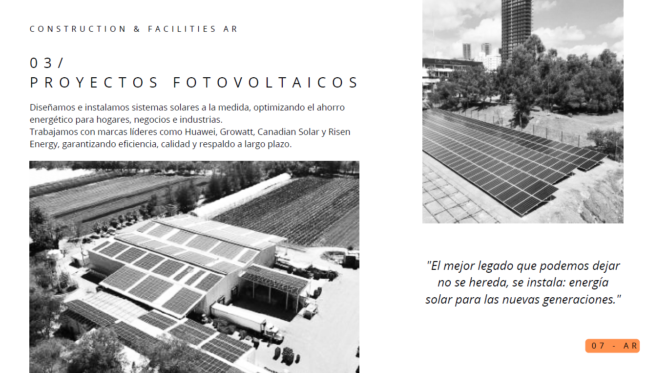 Construction & Facilities AR Edificaciones completas (casas, comercios, oficinas) Ampliaciones y remodelaciones terminadas Diseños arquitectónicos y planos técnicos Modelos 3D o representaciones del proyecto antes de construir Propuestas y presupuestos detallados