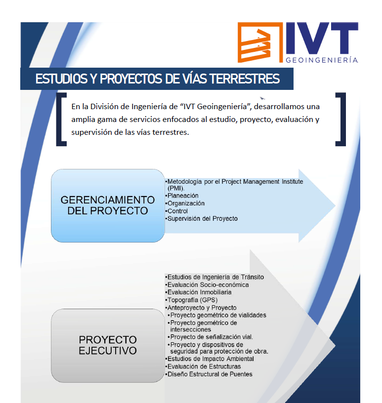 La empresa Geoingeniería y Servicios Aplicados a la Infraestructura del Transporte S.A. de C.V. (conocida como IVT Geoingeniería) es una organización mexicana especializada en la consultoría técnica y el control de calidad para obras de infraestructura