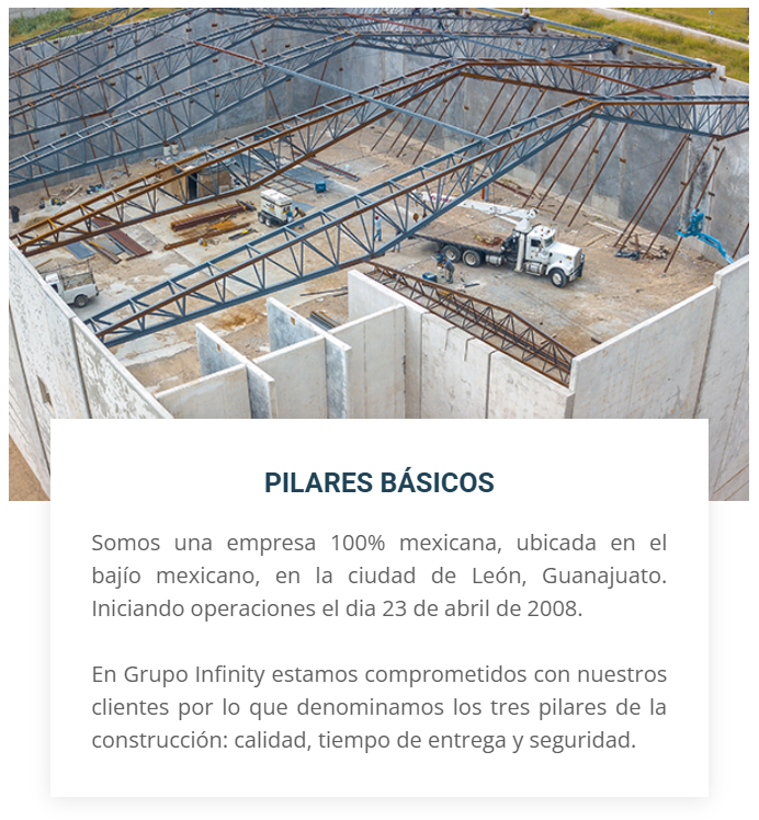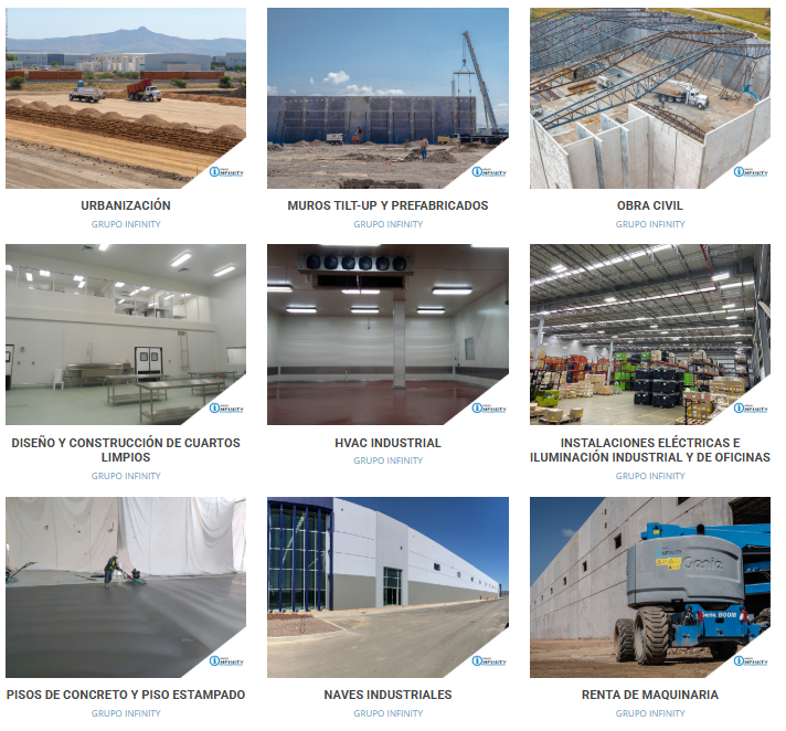 Grupo Constructor Infinity del Bajío Construcción e Ingeniería Edificación Industrial y Comercial: Diseño y construcción de naves industriales, centros de distribución y complejos comerciales bajo esquemas de "Llave en Mano". Sistemas de Muros Tilt-Up: Una técnica avanzada...