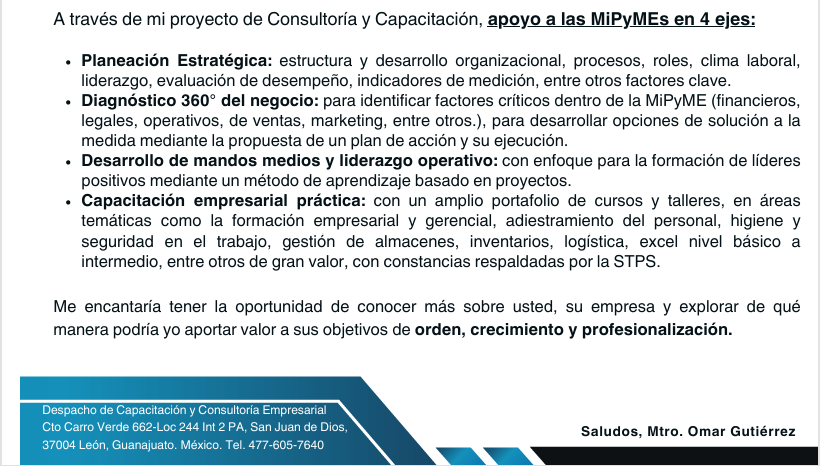 Mtro. Omar Gutiérrez Capacitaciones y Consultorías Empresariales a MiPyMEs