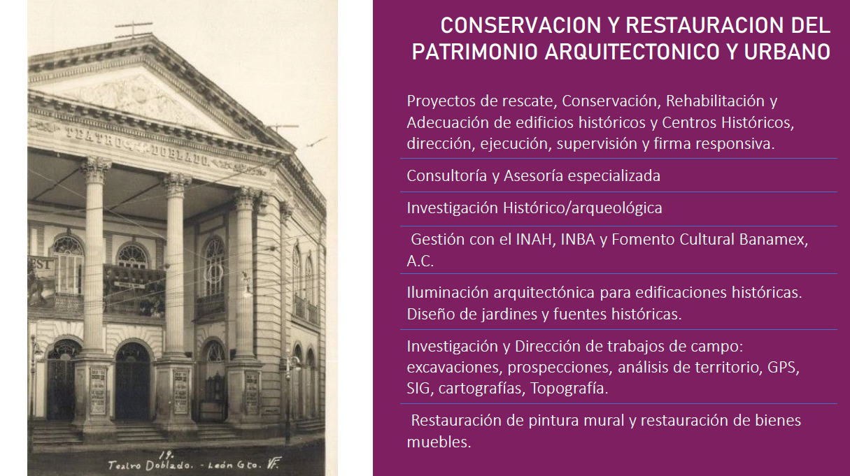 Investigación histórico-arqueológica y gestión ante instituciones como el INAH e INBA.
