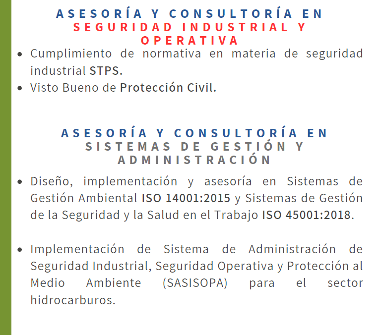 Servicios orientados a la protección de los trabajadores y el cumplimiento de normas oficiales: